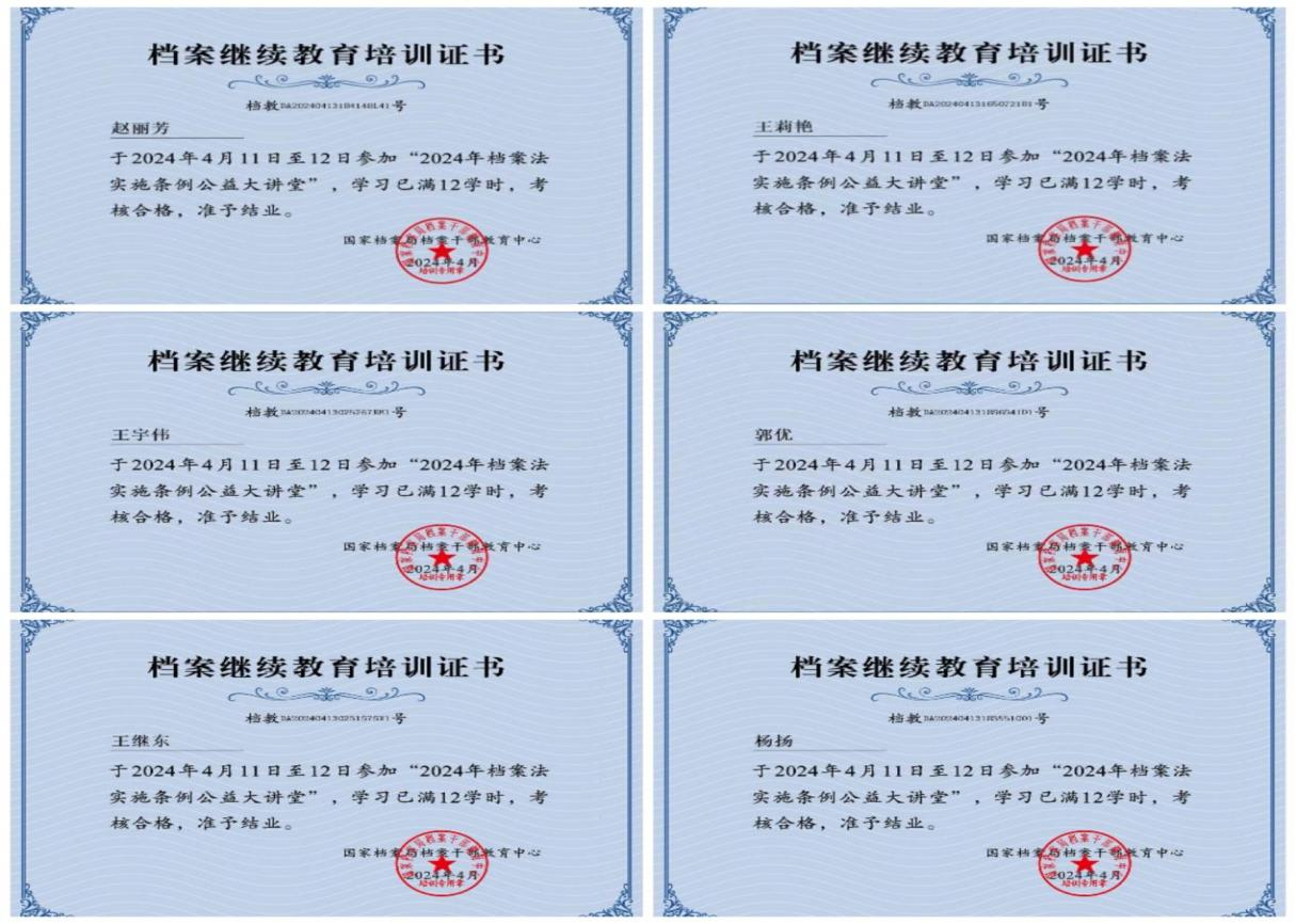 為深入學(xué)習(xí)貫徹習(xí)近平總書記關(guān)于新時代辦公廳工作和檔案工作的重要指示批示精神,學(xué)習(xí)宣傳貫徹新實施的《中華人民共和國檔案法實施條例》,切實幫助廣大檔案工作者全面準(zhǔn)確理解《實施條例》的內(nèi)容和精神實質(zhì),進(jìn)一步強(qiáng)化檔案工作人員依法管檔用檔意識。4月11日-12日,集團(tuán)公司及所屬企業(yè)認(rèn)真組織檔案相關(guān)工作人員參加由國家檔案局政策法規(guī)司與檔案干部教育中心面向檔案系統(tǒng)和社會舉辦的《檔案法實施條例》公益大講堂。4月15日,組織培訓(xùn)人員參加在線考試,共計47人通過考試并獲得證書。