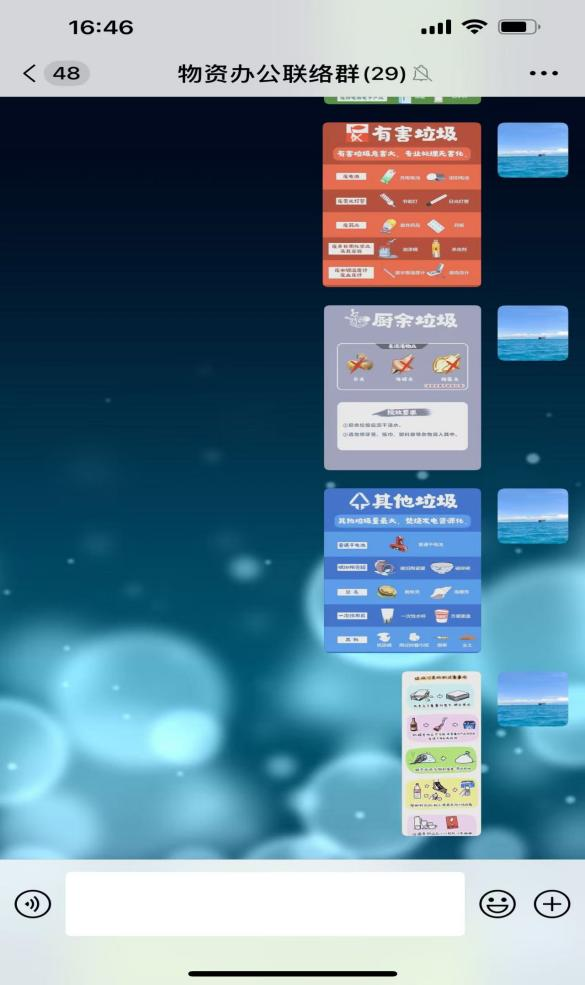 2.數(shù)字化創(chuàng)新增互動:在工作微信群轉(zhuǎn)發(fā)垃圾分類組畫,組織全體員工利用閑暇時間自主觀看垃圾分類短片,了解垃圾分類的重要性及意義,掌握垃圾分類標(biāo)準(zhǔn)和投放要求。