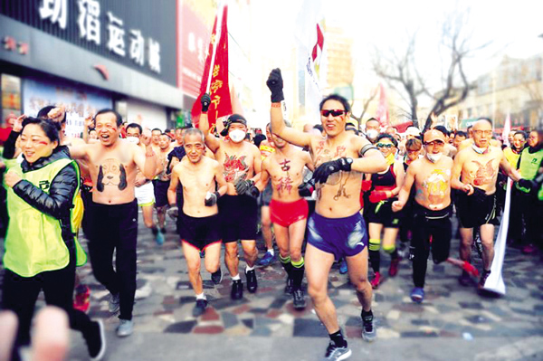 2018年1月1日早,陽泉市第三屆“全城光豬跑”活動(dòng)在市區(qū)舉行,我單位王雅平(下圖右二)參加了活動(dòng)。該活動(dòng)旨在提倡人們親近自然、健康生活。當(dāng)天,市區(qū)最低氣溫零下9攝氏度,300多名參與者赤裸上身,畫著各式炫酷的圖案,在嚴(yán)寒中奔跑5公里,勝利完成了2018山城第一跑。