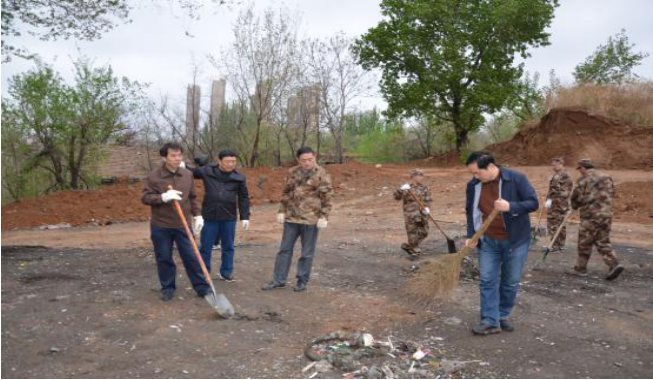 上午九時,吳永信對各黨支部作簡短部署后,參加活動的兄弟單位40余名黨員及再生公司全體在職職工13人直奔指定場地,奮臂揮鍬,對場地上的剩余廢品垃圾進行了全面細致的清理清掃,上下場地上頓時呈現(xiàn)出一片熱火朝天的勞動景象……。真是人多力量大,不到兩個小時,整個場地面貌便煥然一新。勞動結(jié)束后,集團公司分管創(chuàng)衛(wèi)工作的副總經(jīng)理程文慶主持召開了各有關(guān)單位負責(zé)人創(chuàng)衛(wèi)工作現(xiàn)場會,安排了近期的創(chuàng)衛(wèi)攻堅工作。
