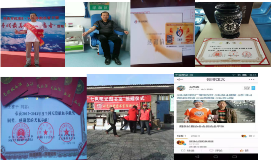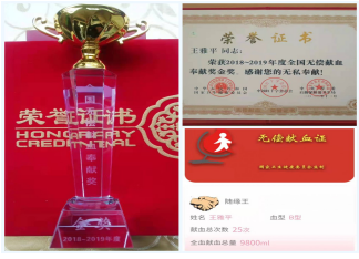 從2006年起,他就堅(jiān)持無(wú)償獻(xiàn)血,一年兩次,從未間斷,曾先后于2015年、2018年獲全國(guó)無(wú)償獻(xiàn)血奉獻(xiàn)獎(jiǎng)銅獎(jiǎng)、銀獎(jiǎng)。截止目前王雅平同志的獻(xiàn)血次數(shù)已達(dá)25次、獻(xiàn)全血總量達(dá)到9800毫升,他的涓涓熱血不知挽救了多少人的生命。