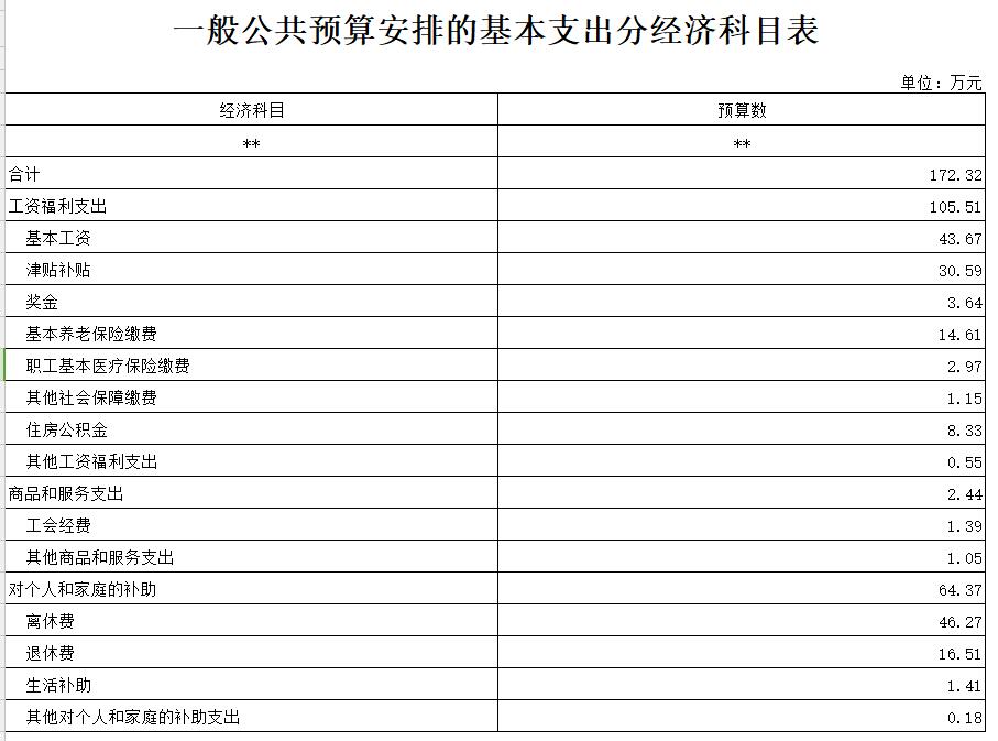 本單位2018年預(yù)算支出均為基本支出,共計(jì)172.32萬(wàn)元。較上年預(yù)算支出398.29萬(wàn)元減少225.97萬(wàn)元,主要是2018年無(wú)項(xiàng)目支出、退休人員費(fèi)用由養(yǎng)老保險(xiǎn)中心統(tǒng)籌支付所致。本單位無(wú)辦公費(fèi)等公用支出。
