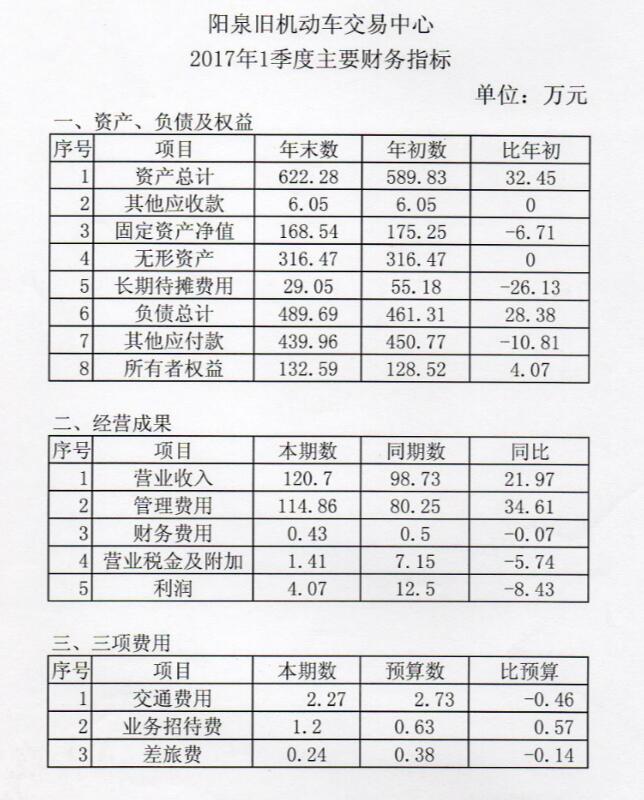 陽泉舊機動車交易中心二○一七年上半年信息公開
