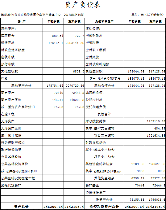 企業(yè)資產(chǎn)管理中心2017年上半年信息公開資料