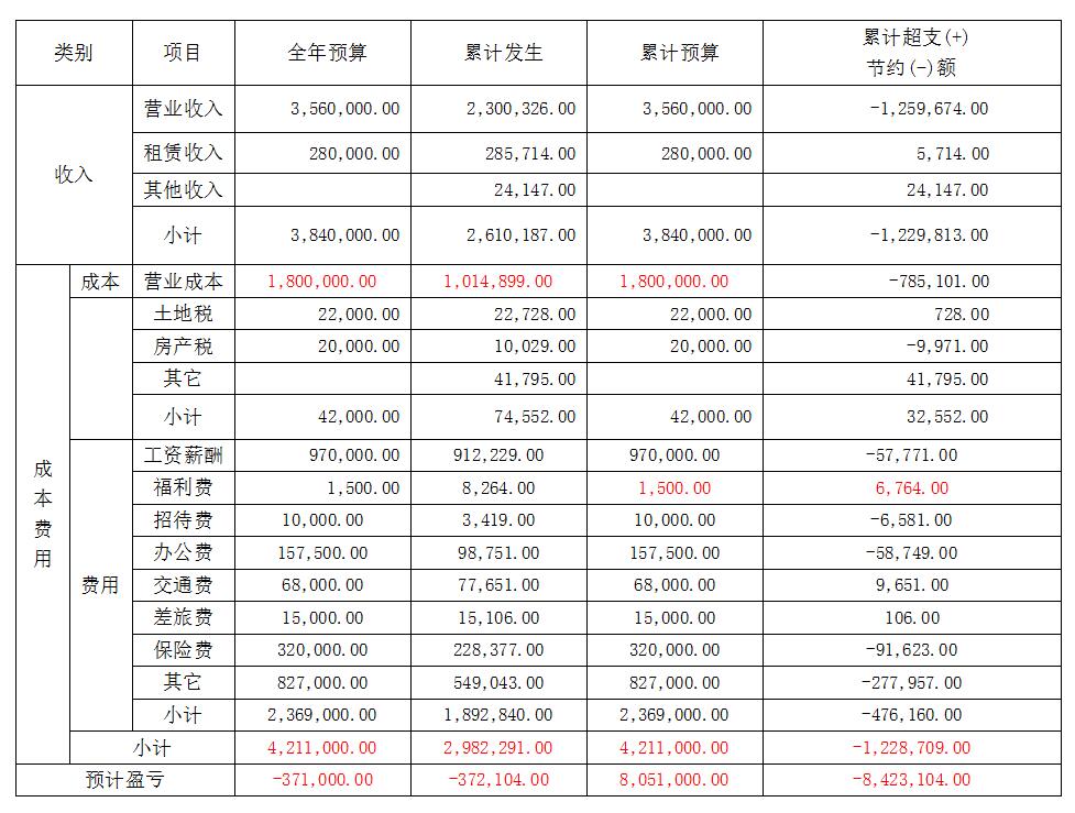 主要指標(biāo)及執(zhí)行情況(單位:元)