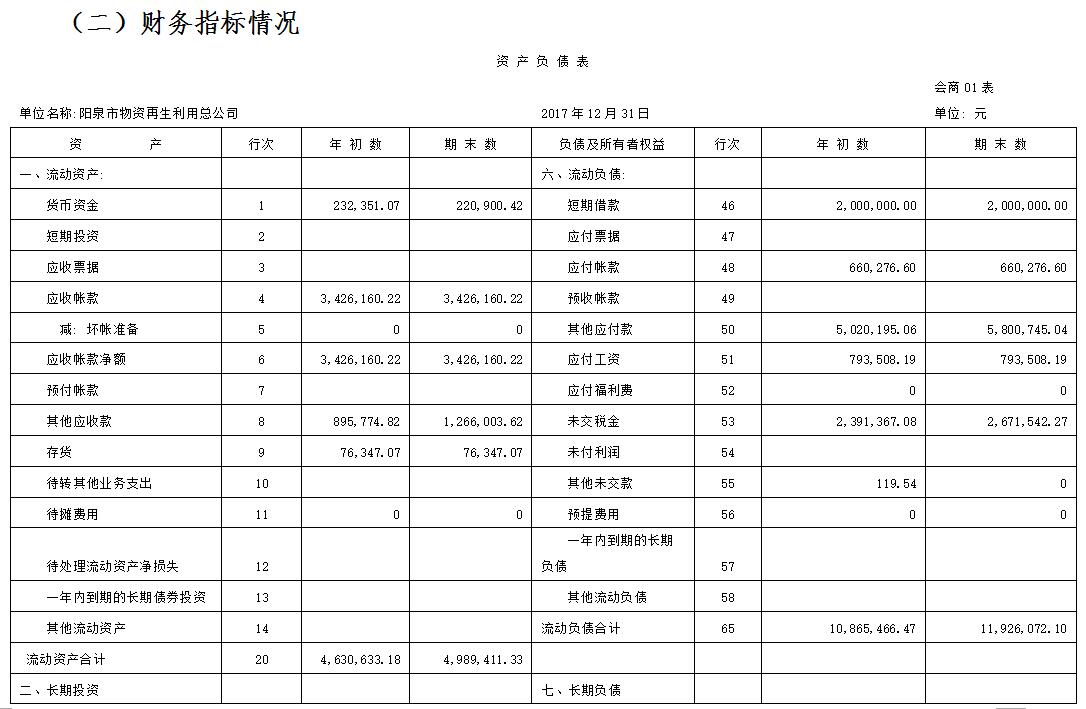 2017年,物資再生利用總公司以習(xí)近平總書記系列重要講話為指導(dǎo),緊緊圍繞“止滑向好”的主旋律,在集團(tuán)公司支持下,本著穩(wěn)中求進(jìn)的工作基調(diào),沉著應(yīng)對環(huán)保壓力緊逼、主營業(yè)務(wù)停滯、資金周轉(zhuǎn)困難、銀行賬戶凍結(jié)、成本費(fèi)用難壓等諸多不利因素,正確決策、凝心聚力、辛苦拼搏,實(shí)現(xiàn)收入64.3萬元(全部為租賃收入),比年初預(yù)算70萬元減少了5.7萬元,減少的主要原因是環(huán)保壓力致部分場地退租;利潤虧損65萬元,與年初集團(tuán)公司下達(dá)任務(wù)相當(dāng),費(fèi)用支出101 萬元,比年初預(yù)算節(jié)約4.5 萬元。年末職工人數(shù)88人,在職職工和內(nèi)養(yǎng)人員工資正常發(fā)放,全部職工醫(yī)療、失業(yè)保險也都如期上繳,為三名到齡職工如期辦理退休;全年沒有發(fā)生一起安全事故,隱患治理率和危險源監(jiān)控管理率均達(dá)到100%。