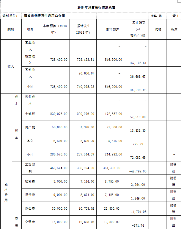 截止9月30日,再生公司實(shí)現(xiàn)租賃收入70萬元,其它收入4萬元;完成年度預(yù)算72.8萬元的102 %;利潤-38.4萬元,完成年利潤-60萬元任務(wù)的64%;發(fā)生費(fèi)用112.4萬元,完成預(yù)算137.7萬元的82%;在崗人員工資按2017年陽泉最低標(biāo)準(zhǔn)按時(shí)發(fā)放,“40、50”人員、內(nèi)退人員工資也按月發(fā)放;累計(jì)為6名達(dá)退休年齡職工一次性補(bǔ)繳社保費(fèi)用辦理了正常退休手續(xù) 。