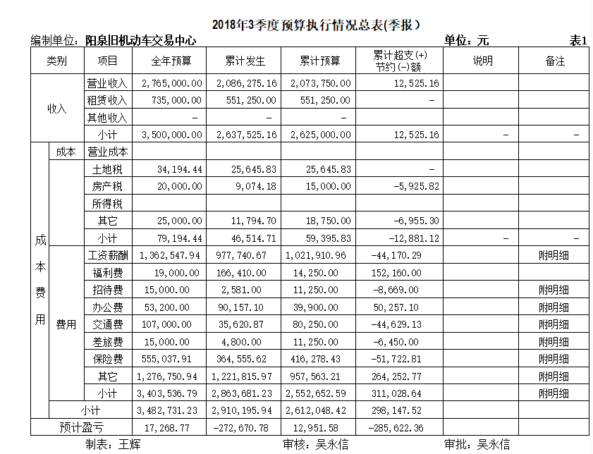由于二手車政策變動,第三季度二手車市場一度混亂,造成二手車交易收入急劇下滑,企業(yè)領(lǐng)導正在積極向有關(guān)部門反饋。企業(yè)第三季度經(jīng)營情況如下: