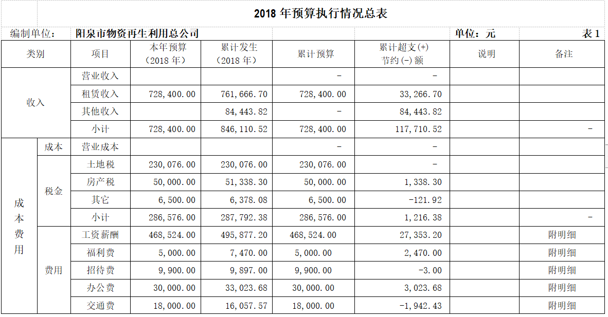 截止2018年12月底,再生公司實現(xiàn)租賃收入76.2萬元,比去年同期增加12.1萬元,其它收入8.4萬元,利潤-48萬元(年目標利潤-60萬元);發(fā)生費用130.6萬元,比去年同期增加3萬元;年末職工人數(shù)68人(原拆解過來人員回歸拆解),工資總額比去年同期穩(wěn)中有增,在崗職工工資按2017年陽泉市最低工資標準足額發(fā)放,“40、50”內養(yǎng)人員工資小幅上漲并按月發(fā)放;全部職工醫(yī)療、失業(yè)保險也都如期上繳,為九名到齡職工如期辦理了退休手續(xù);全年沒有發(fā)生一起安全責任事故,隱患治理率和危險源監(jiān)控管理率均達到100%;公司轉型改制取得預期進展;沙江大集體按國資委要求實行了注銷關閉;“三供一業(yè)”均按對應部門進度跟進 。