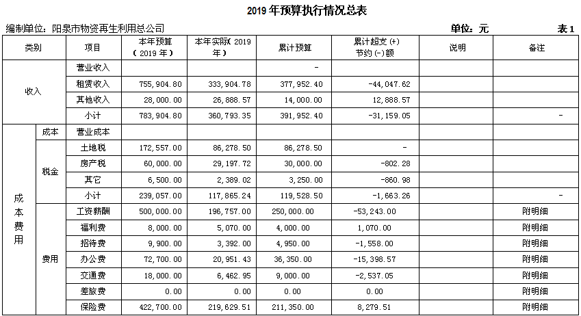 截止6月30日,物資再生利用總公司實(shí)現(xiàn)收入總額36萬元,完成全年預(yù)算的46%,比去年同期39.5萬元減少了3.5萬元,發(fā)生費(fèi)用63萬元,完成全年預(yù)算的43%,比去年同期66.4萬元減少3.4萬元;利潤-27萬元,完成全年預(yù)算-68萬元的40%,比去年同期-27.8萬元減虧0.8萬元;在崗人員工資按陽泉市2015年最低標(biāo)準(zhǔn)按時(shí)發(fā)放,“40、50”人員、內(nèi)退人員工資也按月發(fā)放。