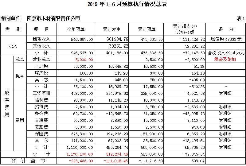 截止6月30日,木材有限責(zé)任公司實(shí)現(xiàn)租賃收入36.2萬(wàn)元,完成全年預(yù)算的38%,比去年同期56.2萬(wàn)元減少了20萬(wàn)元,發(fā)生費(fèi)用總額51.2萬(wàn)元,完成全年預(yù)算的44%,與去年同期基本相同;利潤(rùn)-11萬(wàn)元,完成全年預(yù)算-22萬(wàn)元的50%;1-6月在崗人員按協(xié)商工資足額發(fā)放,“40、50”人員、內(nèi)退人員工資也按月發(fā)放。