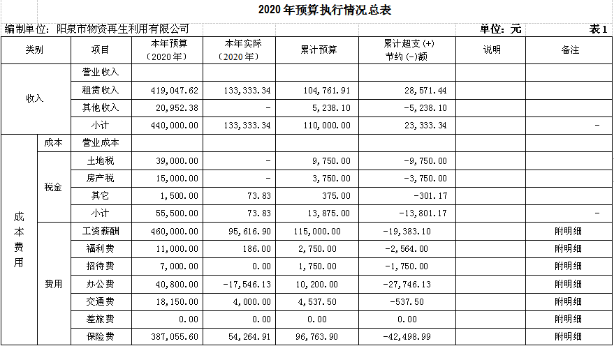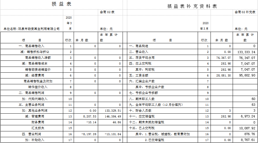 截止3月31日,物資再生利用有限公司因政府土地收儲、疫情等疊加原因,收入總額為13.3萬元,比去年同期23.4萬元銳減10.1萬元,完成年預(yù)算44萬元的30%;發(fā)生各項(xiàng)費(fèi)用14.6萬元,比去年同期37.6萬元減少23萬元,完成年預(yù)算112萬元的13%;利潤-1.3萬元,比去年同期-15.8萬元減虧14.5萬元;在崗人員工資按陽泉市現(xiàn)行最低標(biāo)準(zhǔn)按時(shí)發(fā)放,“40、50”人員、內(nèi)退人員工資也按月發(fā)放。