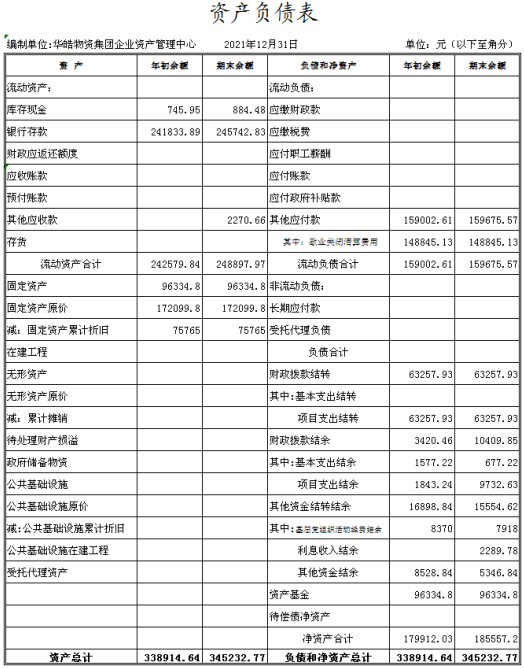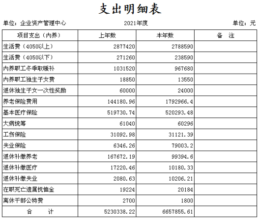 陽(yáng)泉市華皓物資集團(tuán)有限責(zé)任公司企業(yè)資產(chǎn)管理中心成立于2014年11月,是物資集團(tuán)公司原化輕總公司等七家歇業(yè)關(guān)閉企業(yè)的留守機(jī)構(gòu),隸屬于陽(yáng)泉市華皓物資集團(tuán)有限責(zé)任公司,主要負(fù)責(zé)處理七家歇業(yè)關(guān)閉企業(yè)的相關(guān)事宜。中心工作人員編制7人,資金來(lái)源主要依靠財(cái)政撥款,支出分為內(nèi)養(yǎng)人員經(jīng)常性費(fèi)用和中心留守人員及機(jī)構(gòu)運(yùn)行費(fèi)用兩部分。截止2021年12月底,企業(yè)總?cè)藬?shù)649人,其中在冊(cè)職工296人,離退休職工353人。在冊(cè)職工按照年齡結(jié)構(gòu)劃分“40、50”以下人員99人,“40、50”以上人員197人,在冊(cè)職工生活和社保等費(fèi)用享受財(cái)政補(bǔ)貼。2021年財(cái)政撥款收入721.22萬(wàn)元,財(cái)政撥款支出720.37萬(wàn)元,其中:內(nèi)養(yǎng)人員經(jīng)常性費(fèi)用支出665.79萬(wàn)元,中心留守人員及機(jī)構(gòu)運(yùn)行費(fèi)用支出54.58萬(wàn)元,收支基本平衡。全年累計(jì)為職工發(fā)放生活費(fèi)303萬(wàn)元,繳納社會(huì)保險(xiǎn)260萬(wàn)元,為14名到齡職工辦理了退休手續(xù)。