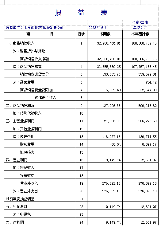 銷售完成10831萬元,購進完成10576萬元,利潤1.2萬元,在崗人員按陽泉現(xiàn)行最低標準發(fā)放,"40.50"人員工資也按月發(fā)放,為全體職工按時繳納了醫(yī)療保險,職工養(yǎng)老保險欠繳。