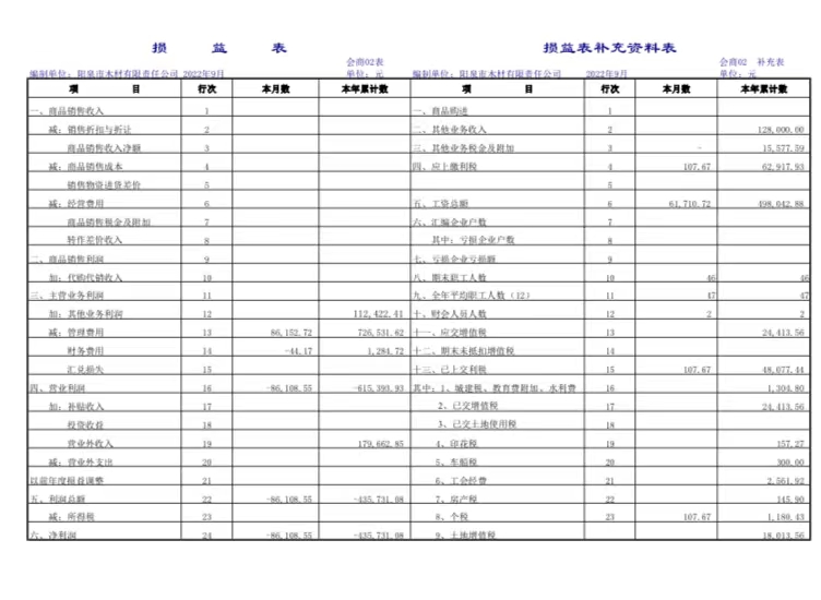 截止9月30日,木材有限責任公司實現(xiàn)租賃收入12.8萬元(含稅13.44萬元),比去年同期50.9萬元減少收入38.1萬元。發(fā)生各項費用總額72.7萬元,比去年同期75.6萬元減少2.9萬元;虧損43.6萬元,比去年同期虧損21.7萬元增虧21.9萬元。截止9月底在冊職工46人,在崗14人,借調(diào)集團公司2人,外聘工程監(jiān)理1人。在崗人員按協(xié)商工資發(fā)放,“40、50”人員、內(nèi)退人員工資按198-310發(fā)放。職工醫(yī)療保險金如期上繳,欠繳養(yǎng)老保險金、失業(yè)保險金。